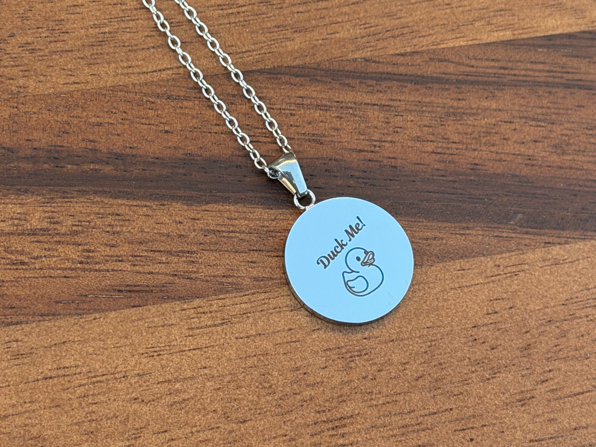 Make a statement with this playful “Duck Me” stainless steel necklace. Engraved on durable, tarnish-resistant stainless steel, this piece blends bold personality with everyday wearability. Lightweight, eye-catching, and full of attitude, it’s the perfect necklace for anyone who loves a fun twist on classic jewelry.