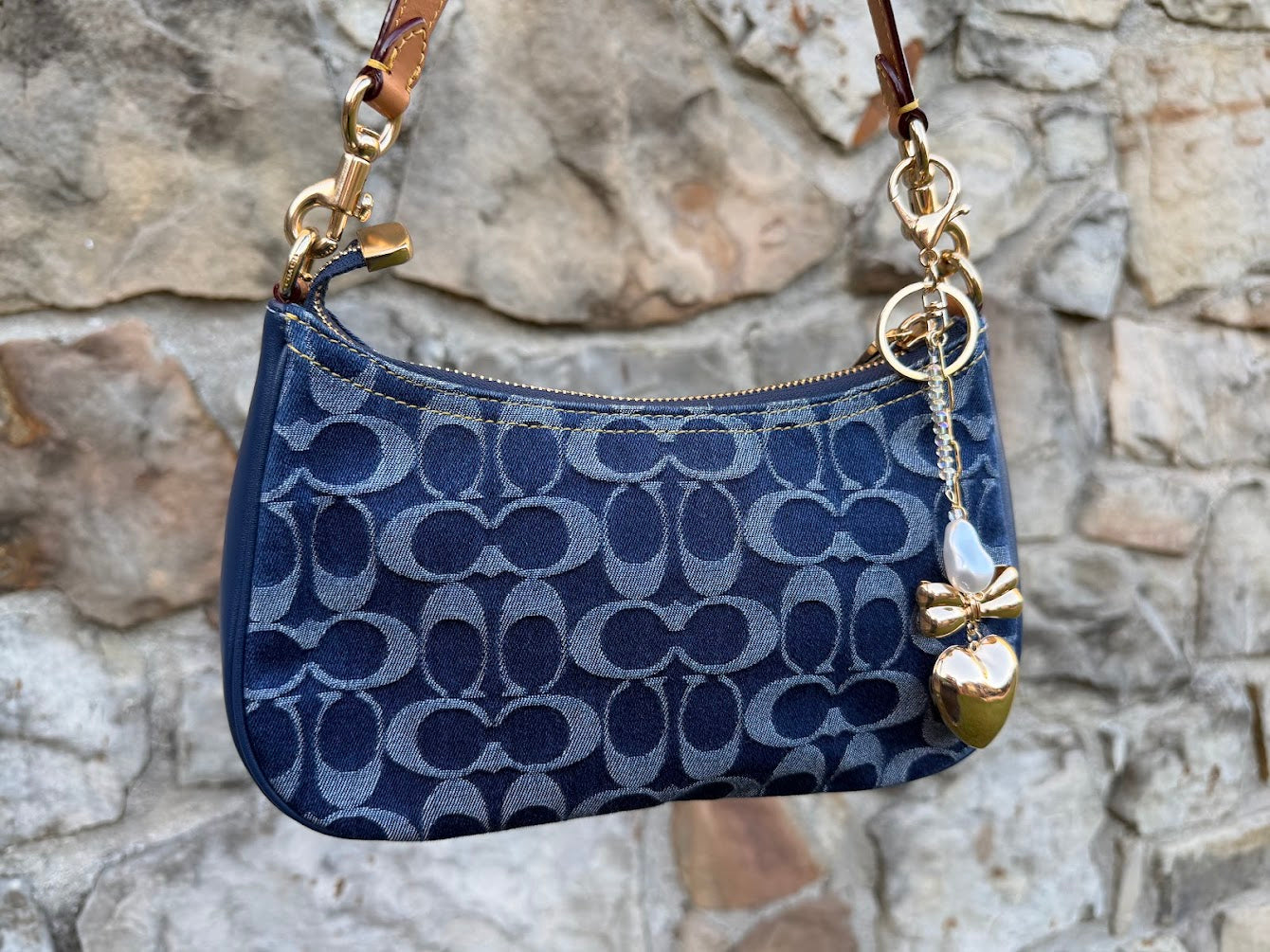 Elevate your style with this luxurious bag charm featuring a bold heavy gold heart paired with a luminous baroque pearl drop. The combination of rich metallic shine and organic pearl elegance creates a timeless accessory that clips effortlessly onto purses, or backpacks. Sophisticated yet versatile, it’s perfect for anyone who loves adding a touch of glamour and refinement to their everyday look.