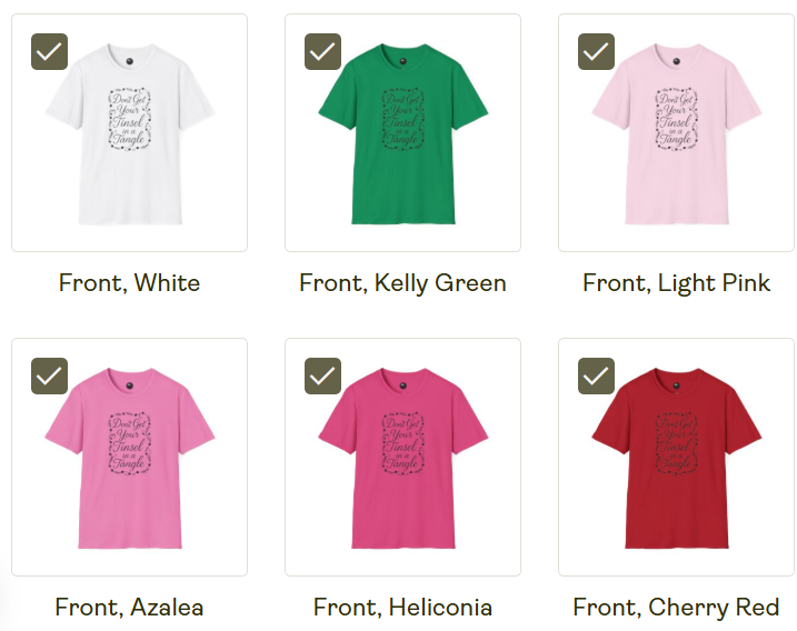 Slip into our “Don’t Get Your Tinsel in a Tangle” Tee — soft, festive, and effortlessly fun.